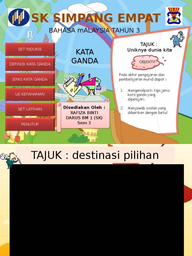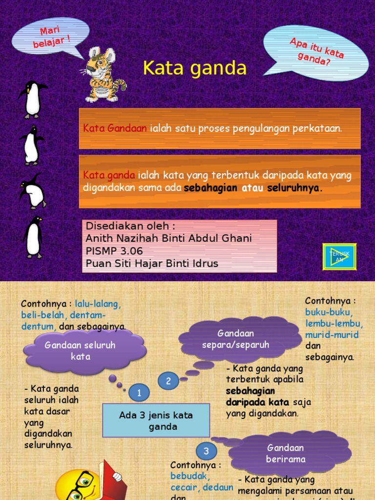 Prof Madya Dr Arba Ie Sujud Ppt Download from slideplayer.info Kata sifat merupakan kata yang menjelaskan sifat, keadaan, karakter, perilaku seseorang. Baik dalam memakai kata dasar dan menyusunnya dalam bentuk kalimat. Jenis ayam pertama yang akan dibahas adalah ayam cochin. Tanah amat utama khususnya bagi manusia sebab keseharian manusia berada diatasnya. Iklan bertujuan untuk membujuk khalayak ramai sehingga menggunakan pemilihan kata dan bahasa yang persuasif. Kata ganda berimbuhan #kataganda #tatabahasa #bahasamelayu. Dalam penggunaan kata di dalam sebuah kalimat, kadang kala ada pengulangan kata. Terdapat empat jenis kata gandaan iaitu